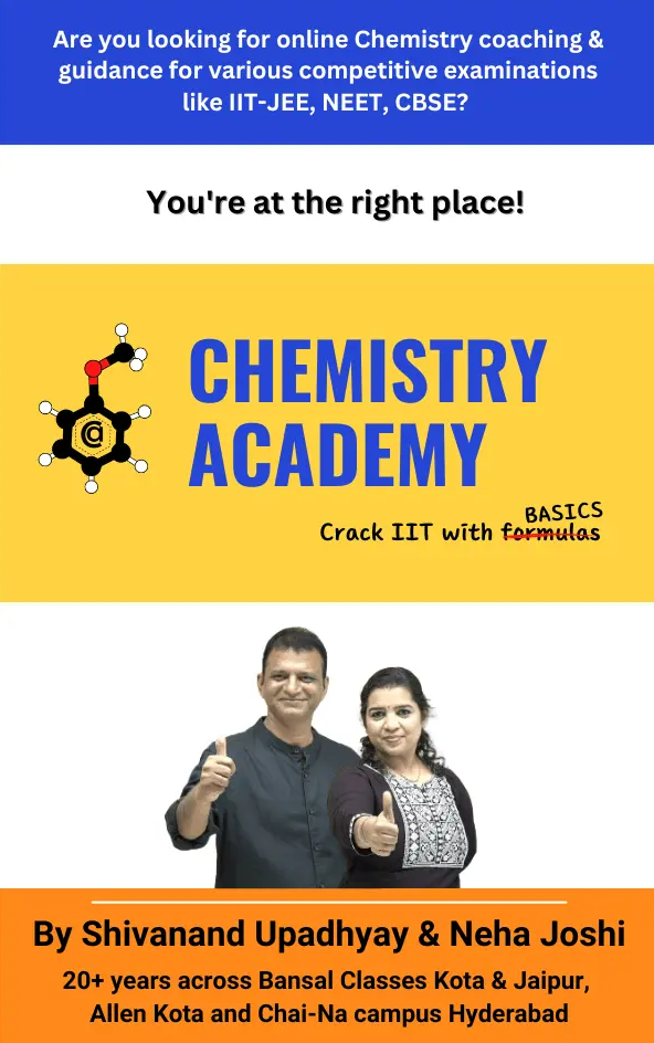 Welcome to Chemistry Academy for IIT JEE & NEET by Shivanand Upadhyay and Neha Joshi. With 20+ years across Bansal classes Kota & Jaipur, Allen Kota, and Chai-Na campus Hyderabad, we believe that it is time to share our knowledge and experience with students beyond their financial & geographical constraints.